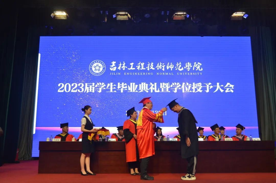 2023年6月26日上午,吉林工程技术师范学院2023届学生毕业典礼暨学位授予大会在凯旋校区隆重举行。学校党委书记刘剑桥,校党委副书记、校长杨晓东,校党委副书记陈景翊,校党委委员常委、纪委书记马晓春,校党委委员常委、副校长刘克平、张存贵、张新华,校党委常委、组织部部长于彦民,校党委委员常委、宣传部长程宇及相关职能部门负责人、各教学学院党政主要负责人、教师代表及部分毕业生、在校生代表参加典礼,共同见证这一庄严的时刻。